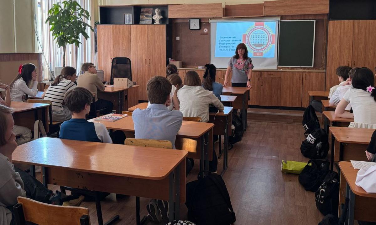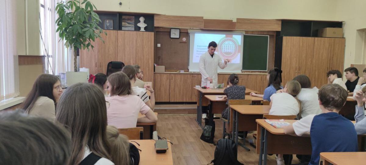 В рамках профориентационной работы в образовательных учреждениях города и области 10 и 16 апреля 2025 года сотрудники кафедры патологической физиологии провели беседу с обучающимися МБОУ СОШ № 28 с углубленным изучением отдельных предметов и МБОУ Лицей № 8 г. Воронежа.