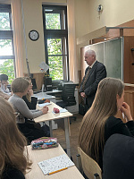 В ходе встречи с учениками 10–11-х классов Владимир Иванович рассказал о ветеранах – преподавателях и студентах, которые внесли значительный вклад в развитие университета и медицины и о примерах мужества и героизма ветеранов-медиков в военное и мирное время.