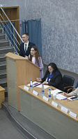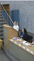 Чурсина Арина, студентка 3 курса, познакомила присутствующих с работой студенческого совета педиатрического факультета, задачей которого является поддерживать интересы студентов, развивать их активную жизненную позицию, организовывать и проводить культурно-массовые и спортивные мероприятия.