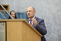 Далее с приветственным словом к собравшимся обратился исполняющий обязанности ректора, профессор Владимир Иванович Болотских. Он поздравил всех собравшихся в аудитории со 107-летием Воронежского медуниверситета, кратко подвёл итоги работы вуза и обозначил перспективы развития, подчеркнув при этом, что труд и усилия каждого лежат в основе достижений и успехов альма-матер, которые базируются на прочной основе, построенной выдающимися предшественниками.