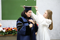 Ярким моментом торжественного собрания стала церемония вручения мантии почетного профессора ВГМУ им. Н.Н. Бурденко. В этом году в торжественной обстановке под аплодисменты зала мантию надела заведующая отделением НМИЦ акушерства, гинекологии и перинатологии им. В.И. Кулакова Инна Аполихина, которая назвала получение престижного звания в стенах родного университета признанием ее вклада в науку и клиническую практику.
