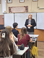 Так в рамках профориентационной деятельности доцент Юлия Викторовна Кондусова в ноябре 2025 года провела встречи с учащимися 10 и 11 классов в нескольких школах Воронежа (МБОУ СОШ № 5, № 73 и № 75).