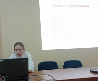 Ординатор кафедры факультетской и паллиативной педиатрии Щербинин Н. А. и студентка П-512 Копытина Д. К. представили клинический случай мукополисахаридоза первого типа.
