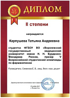 Студенты фармацевтического факультета под руководством к.б.н., доцента Елены Васильевны Семеновой приняли участие во Всероссийской студенческой олимпиаде по фармакогнозии, проведенной на базе Института естественных наук и фармации Марийского государственного университета.