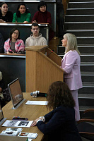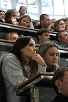 Об активной жизни факультета и о том, как можно совмещать учёбу с внеучебной деятельностью, абитуриентам рассказали студентка 6 курса лечебного факультета Халаимова Людмила и председатель студенческого совета лечебного факультета Зауденкова Екатерина.