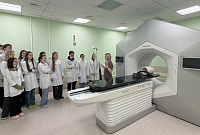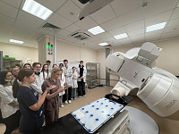 В первый день Зимней школы онкологии была организована экскурсия в радиотерапевтический корпус БУЗ ВО «Воронежский областной научно-клинический онкологический центр». Экскурсия состоялась при поддержке администрации онкоцентра, возглавляемого главным врачом, к.м.н. Мошуровым Р.И. Молодые коллеги получили уникальную возможность познакомиться с работой одного из ведущих онкологических учреждений региона и задать вопросы практикующим специалистам радиотерапевтической службы. Отдельным блоком программы стала лекция эксперта-физика по контролю за источниками ионизирующих и неионизирующих излучений Цыгановой Д.Д., в ходе которой были рассмотрены ключевые аспекты ядерной медицины.