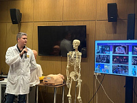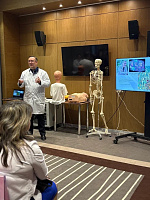 В начале встречи гостям был представлен краткий видеосюжет об университете, а модератором мероприятия выступил к.философ.н., ассистент кафедры нормальной анатомии человека А.А. Шевченко. Программа события включала академический лекторий, где с увлекательными, хорошо иллюстрированными докладами выступили доцент кафедры нормальной анатомии человека доцент Д.А. Соколов, доцент кафедры гистологии Е.Е. Иванова, ассистент кафедры патологической анатомии И.А. Сертаков.